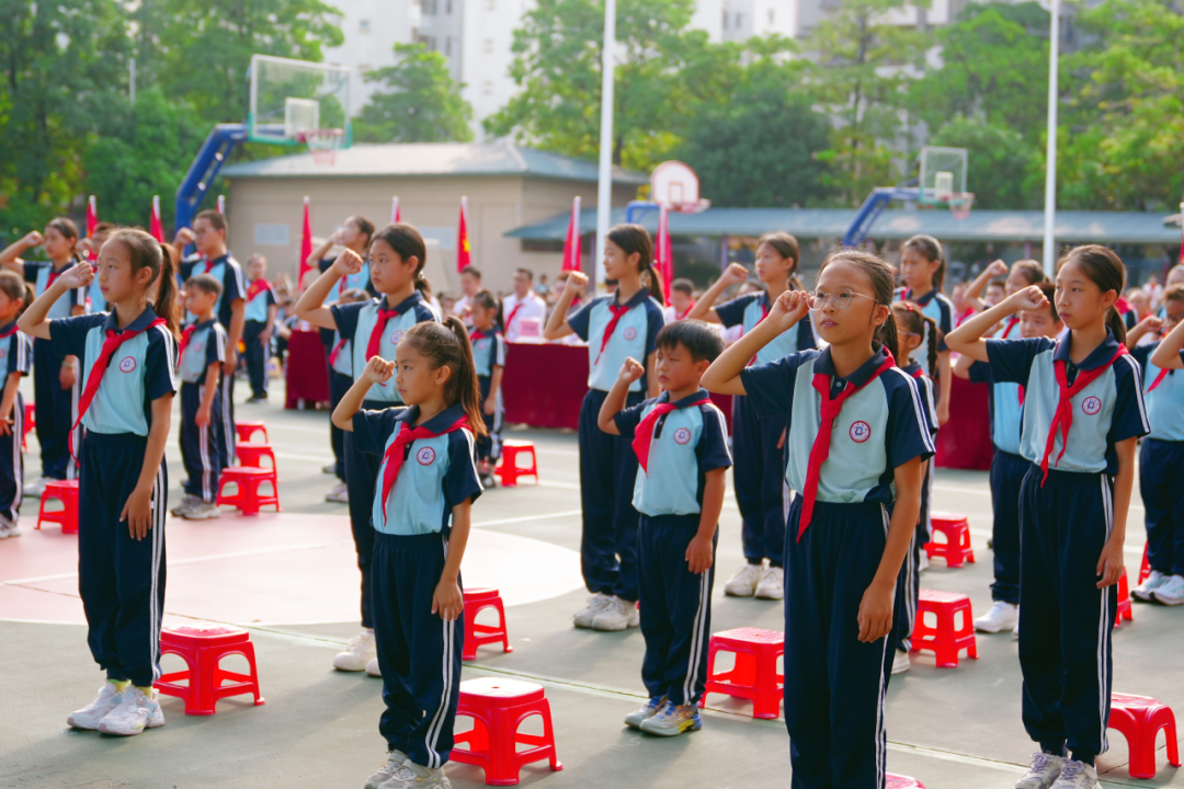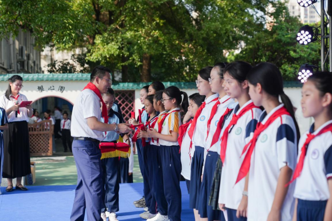 在1500余名领导嘉宾、师生和家长的共同见证下,1368名新队员光荣地戴上了红领巾,完成了一场跨越时空的精神接力。